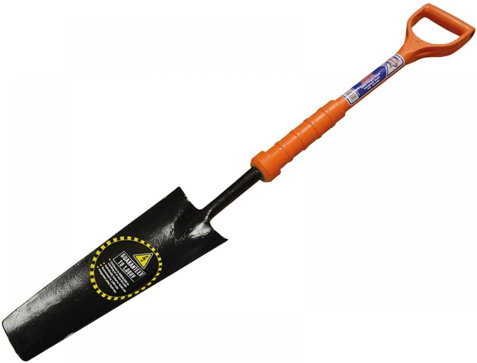 Product Description Faithfull forged steel heavy-duty insulated drainage shovel for working on or near live cable. Featuring a solid forged steel head and a "YD" handle. The insulated shaft has a solid fiberglass core and an abrasive resistant orange polymer coating. An insulated drainage shovel designed for creating drainage channels, preparing trenches for drainage pipes and for digging straight sided holes for fence posts. New improved wider handle grips. Individually tested to 10000 volts and guaranteed to 1000 volts. Integrated safety hand stop. Faithfull Tools are made to tradesmens standards by craftsmen who meet the demanding Faithfull criteria for the design and quality of each individual item. All Faithfull non-electrical tools are guaranteed for a period of 5 years against faulty materials or workmanship and any tradesman or regular DIY tool user can be confident that the care and quality control behind every Faithfull product is designed to ensure a long and dependable service. Faithfull tools are ideal for the discerning tool buyer who prefers lower prices than those associated with some well known brands, but who is not prepared to compromise too much, if at all, on product quality and reliability. Set Contains: 1 x Drainage Shovel